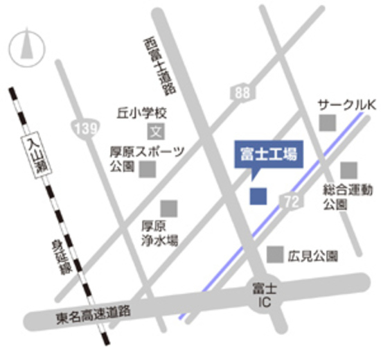 | 富士工場 | 〒417-0801 静岡県富士市大淵2364-1【MAP】 電話 0545(35)6681 |